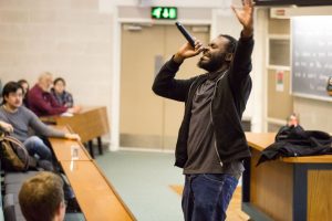 Rapper Consensus performs at Cambridge University